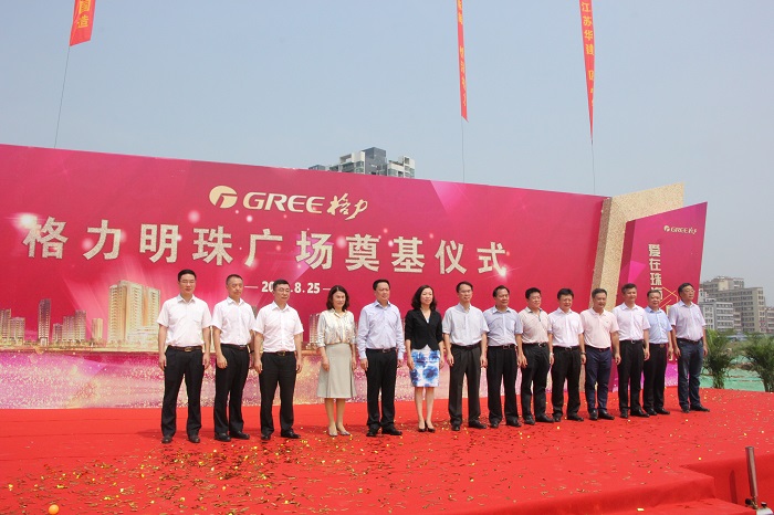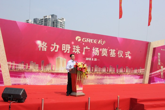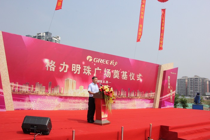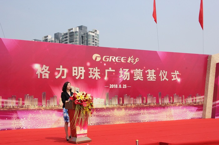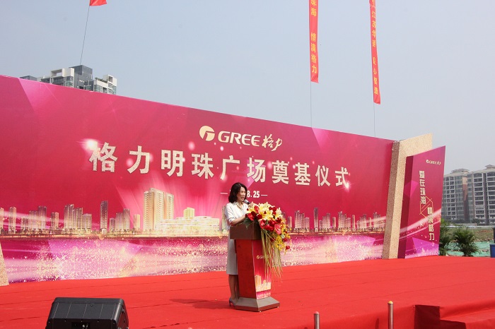 芦晓凤副市长代表珠海市政府对格力明珠广场工程奠基表示热烈祝贺并致辞:格力电器是中国制造的标杆品牌,是珠海实体经济的重要支柱,长期以来为珠海经济社会发展作出了重大贡献。希望格力电器坚定不移地走创新发展道路,全面激发各类人才创新创造活力,进一步做强做优做大核心主业,抢占世界制高点、掌控技术话语权。珠海将积极实施“英才计划”,为包括格力电器广大员工在内的各类人才,提供更多保障和最优环境,真正让各类人才在珠海留得下来、安得下心、干得成事。