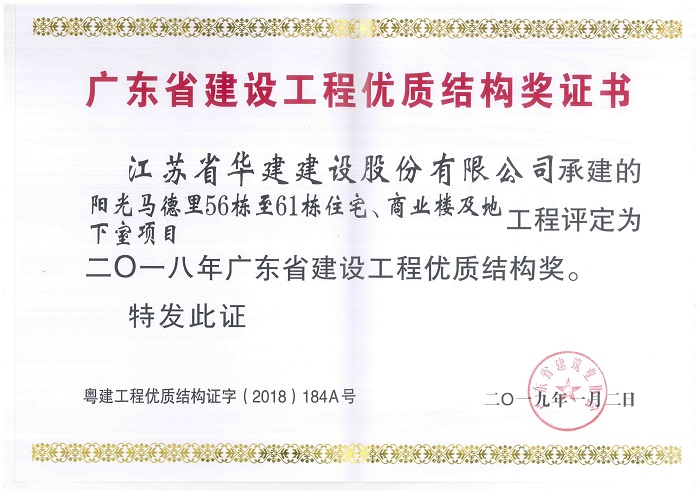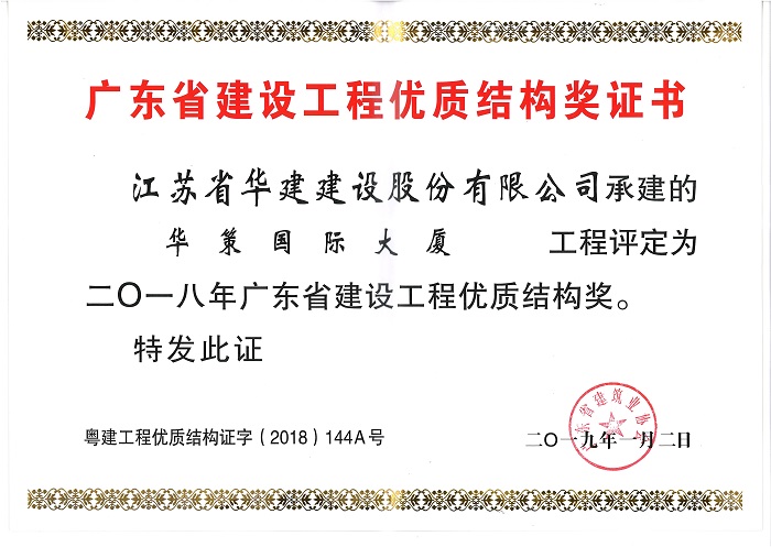 公司3个项目喜获多项省级表彰 时间:2019-04-10 3325 近日,广东省建筑业协会、广东省建筑安全协会分别发文表彰了一批优质结构工程、绿色施工示范工程和安全文明工地,公司3个项目荣列榜单。其中,阳光马德里、横琴隆义广场、华策国际大厦均被表彰为二〇一八年广东省建设工程优质结构奖,华策国际大厦被授予广东省建筑业绿色施工示范工程称号,横琴隆义广场被评为2017年广东省房屋市政工程安全生产文明施工示范工地。