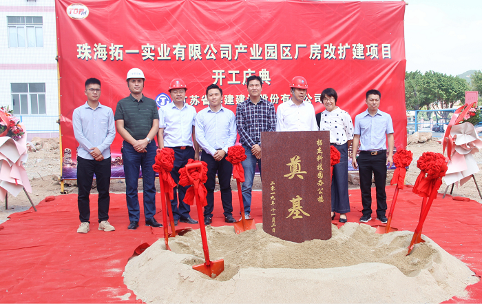 珠海拓一产业园区厂房改扩建项目举行开工仪式 时间:2019-11-03 2401 11月2日,公司承建的珠海拓一实业有限公司产业园区厂房改扩建项目举行隆重的开工仪式。 珠海拓一实业有限公司产业园区厂房改扩建项目,扩建项目建筑总面积为19088.9平方米,其中新一号厂房建筑面积为19050.68平方米(地上建筑面积为17019.75平方米,地下建筑面积为2030.93平方米);门卫室建筑面积为38.22平方米,工程暂定价约4600万元,改建项目正在洽谈中。