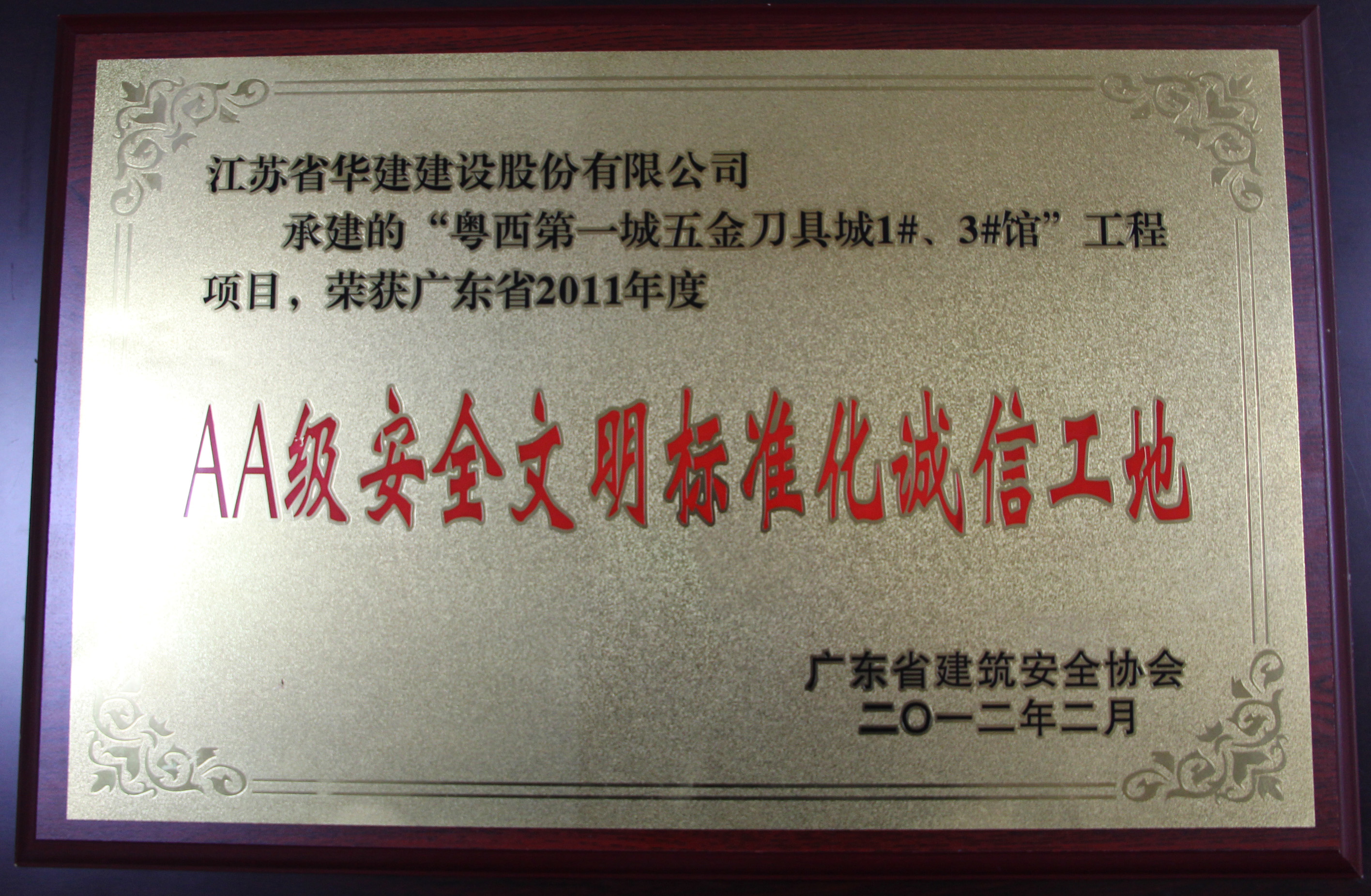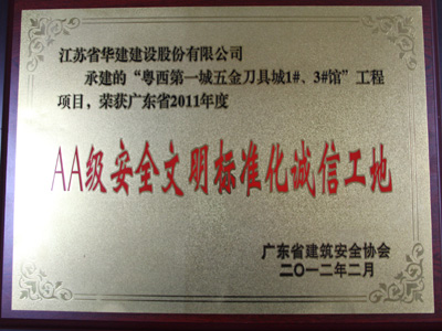 2011年阳江刀剪城项目广东省AA级安全文明标准化诚信工地
