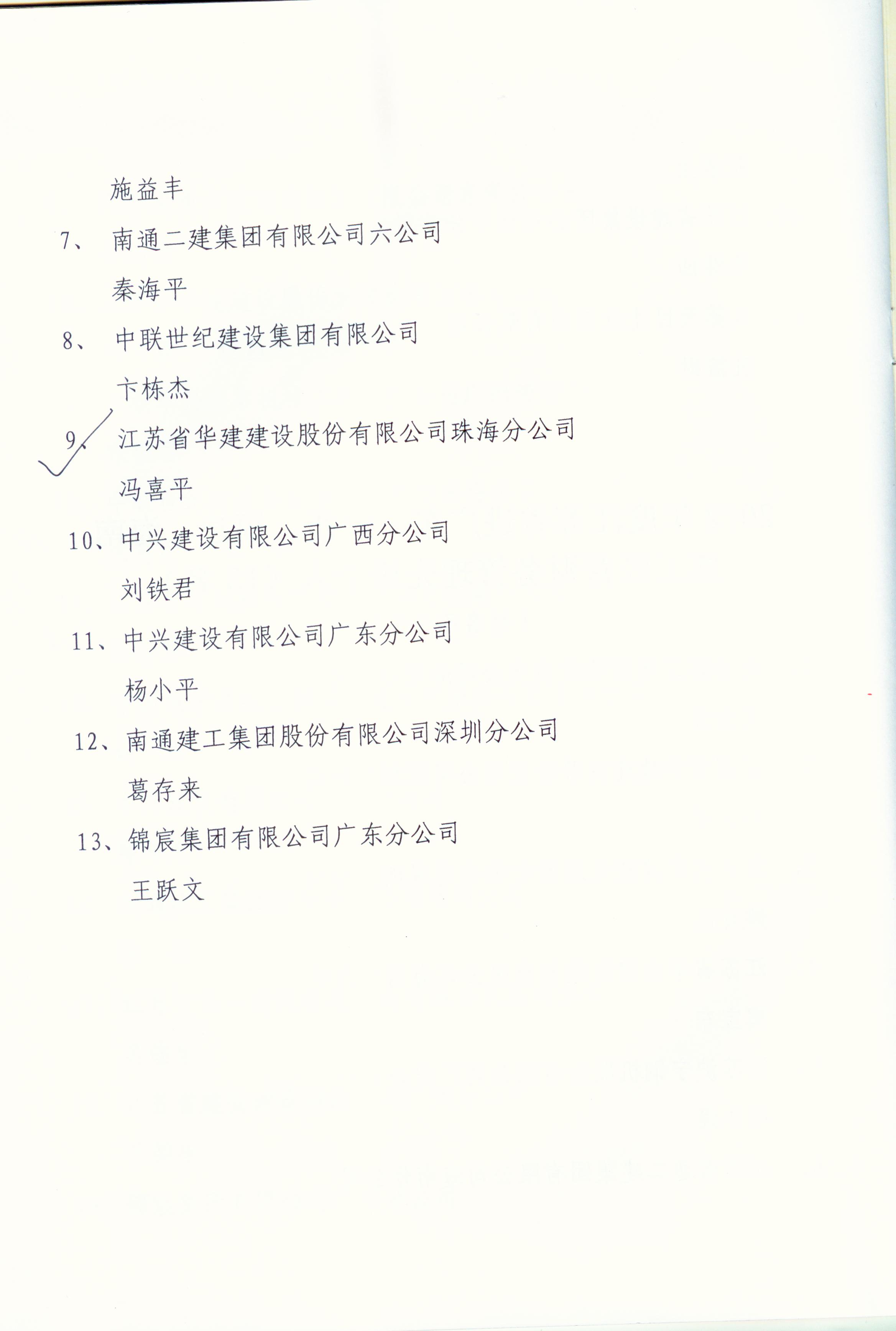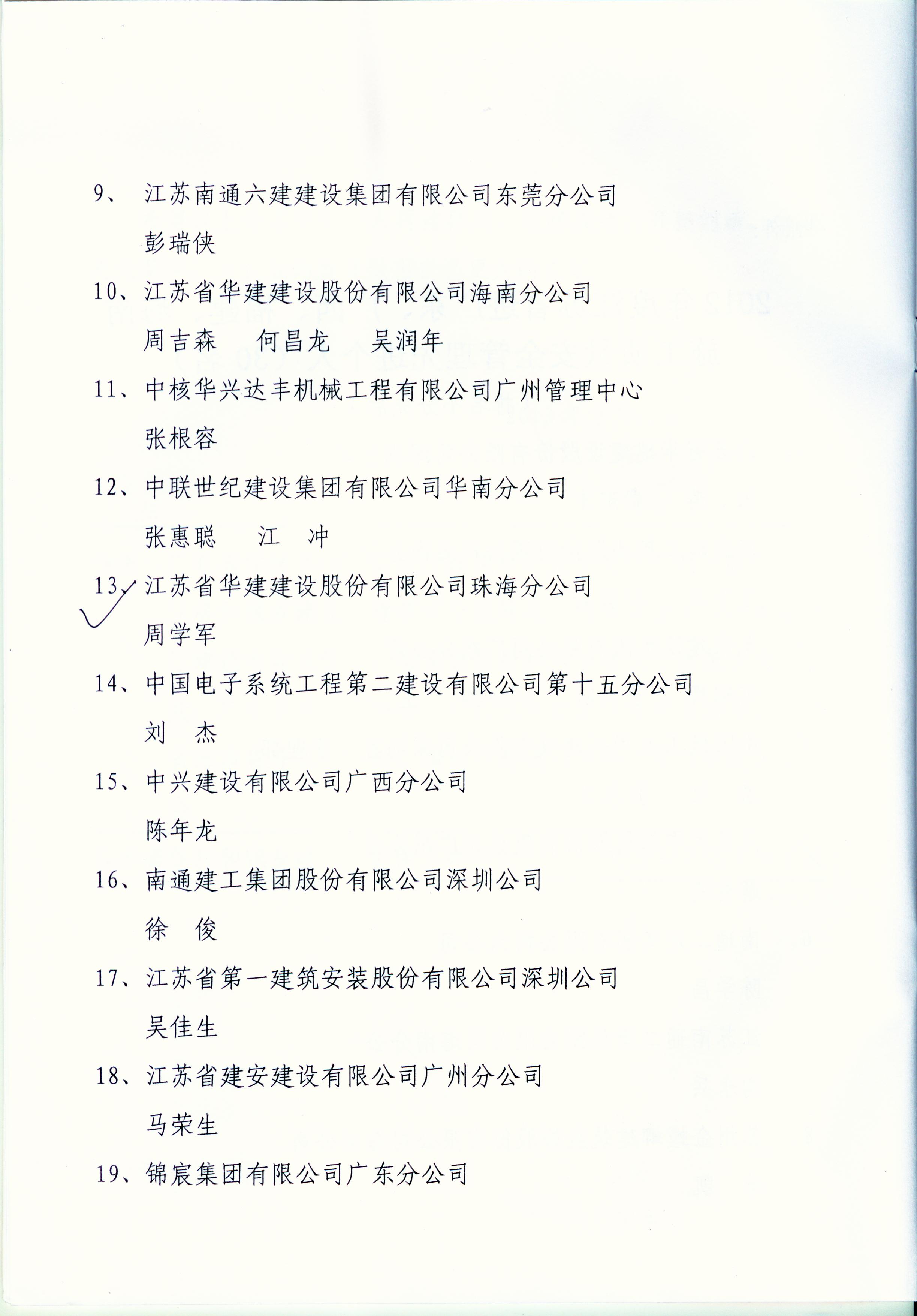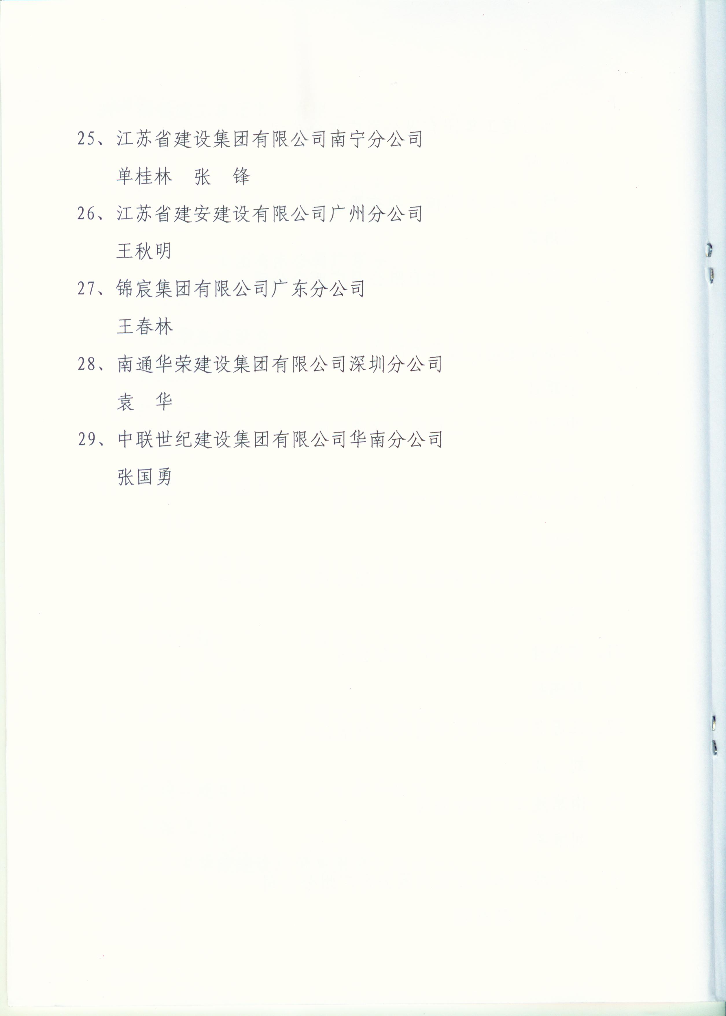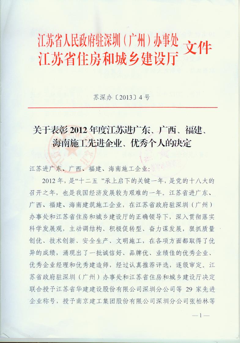 2012年江苏进粤、桂、闽、琼建筑施工先进企业、优秀企业经理、优秀建造师及经营财务管理、质量安全管理先进个人