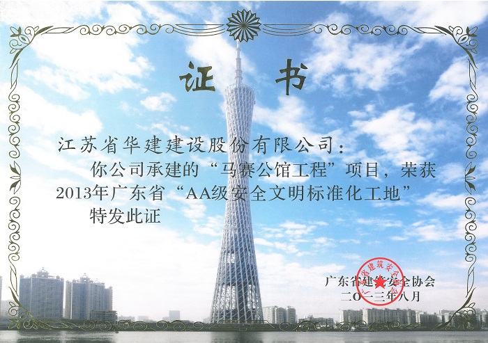 2013年马赛公馆工程广东省“AA级安全文明标准化工地”