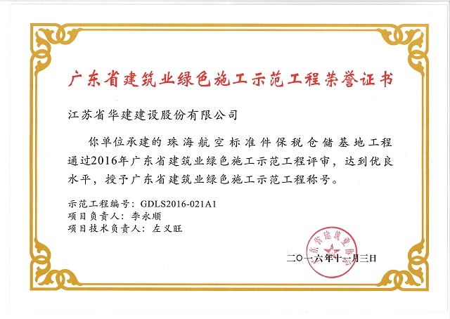 珠海航空标准件保税仓储基地工程 广东省建筑业绿色施工示范工程