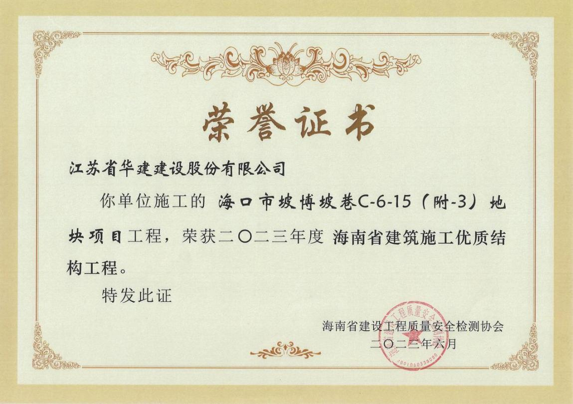 近日,海南省建设工程质量安全检测协会公布了2023年度(6月份)海南省建筑施工优质结构工程...