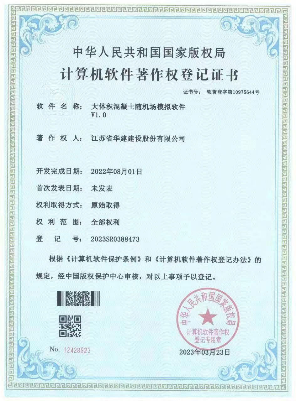 近日,国家版权局对江苏华建自主研发的《大体积混凝土随机场模拟软件V1.0》软件产品进行了知...