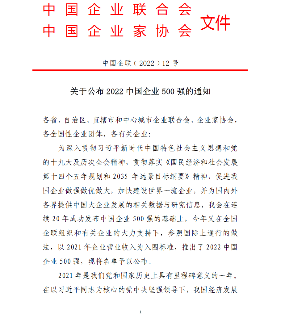 9月6日,中国企业联合会、中国企业家协会发布“中国企业500强”名单,江苏华建再次上榜,列...