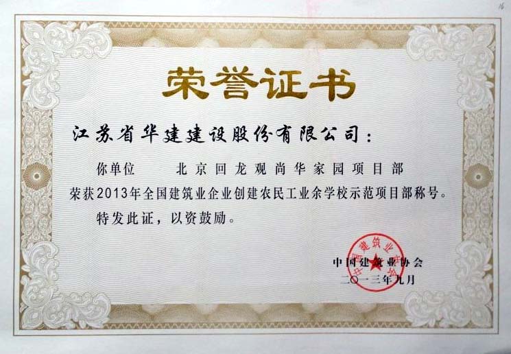 尚华家园项目部获评全国农民工业余学校示范项目部近日,经中国建筑业协会组织专家评审、公示,并...