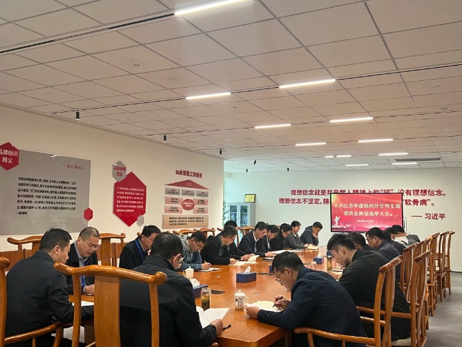 11月15日,江苏华建扬州分公司党支部召开换届选举大会,机关全体党员参加会议,江苏华建党委...