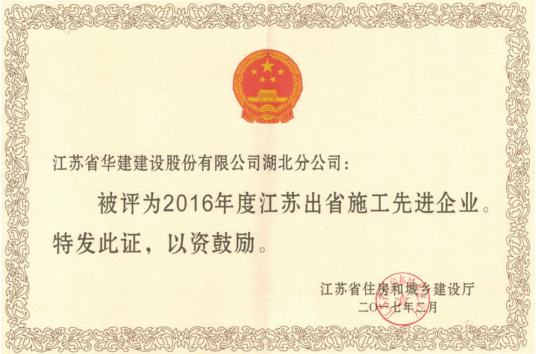 2016年度江苏省进广东、广西、福建、海南建筑施工先进企业2016年度江苏省进中南片区建筑...
