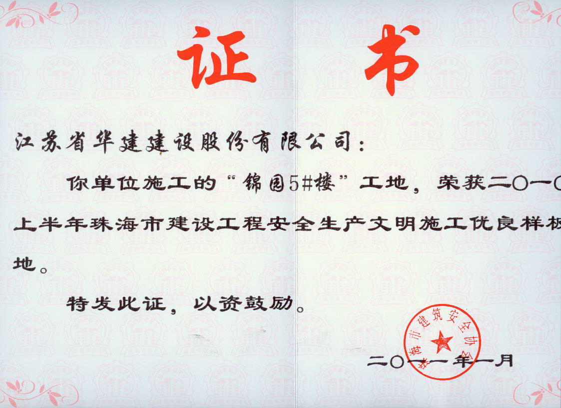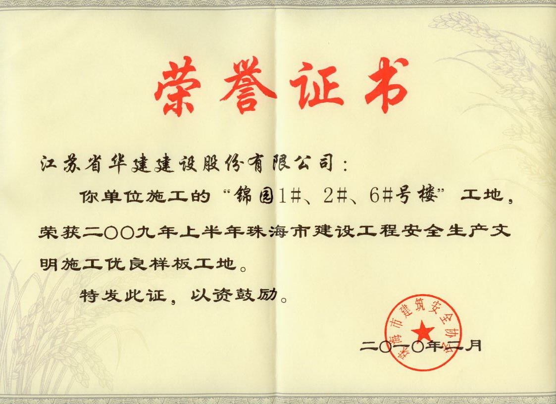 AAA级安全文明标准化工地,是由中国建筑业协会建筑安全与机械分会(原建筑安全分会)实施评选的奖项,是安全文明施工方面的最高奖项。 截止2020年末,江苏华建共计10项工程入选此奖项。