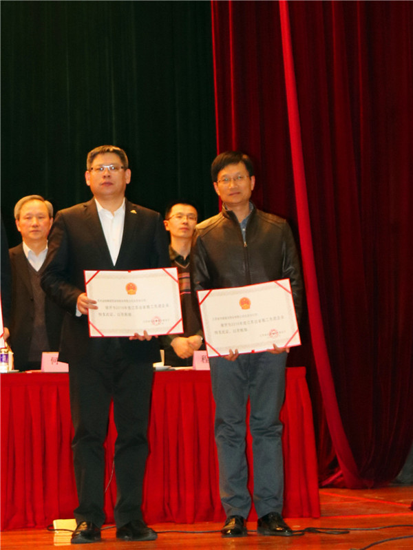 3月21日,2017年度江苏省进京建筑业企业工作会议在京召开,我省住建厅副巡视员、党委副书记杨洪海、北京办事处副主任刘宏伟、北京住建委副主任赵英杰等领导出席了会议并作出重要讲话。本次会议还对2016年度“江苏出省施工先进企业” 、“江苏出省施工优秀建造师”以及先进集体和优秀个人进行了表彰。会上,江苏华建北京公司被省住建厅表彰为“江苏出省施工先进企业”。北京公司总经理吕进作为获奖代表上台领奖。此次表彰,北京公司整体获奖数量继续位居江苏省进京施工企业党组织首位。其中,北京公司机关党支部被评为“先进党支部”,吕方达同志被表彰为“优秀党务工作者”,王震等6名同志被表彰为“优秀共产党员”。