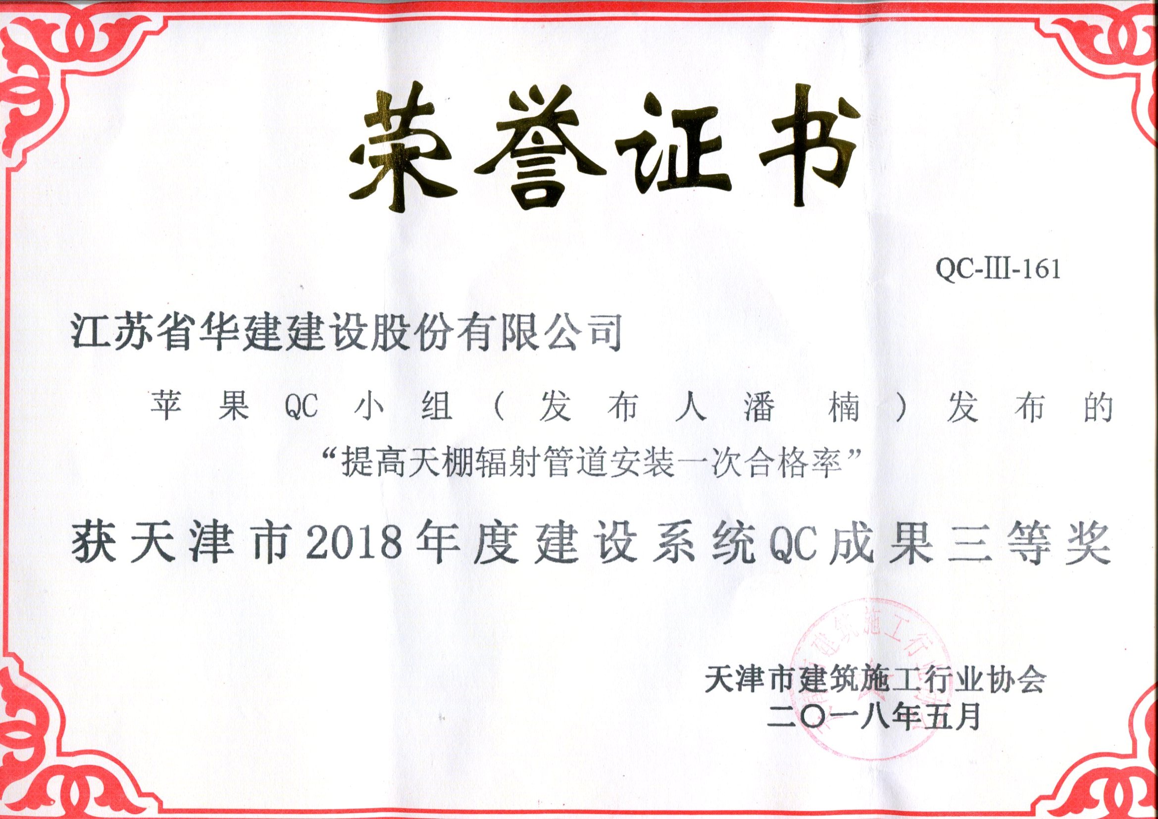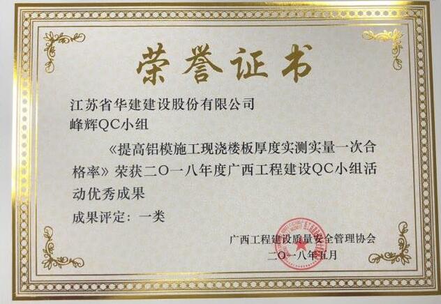 北京公司2项QC成果获得省级表彰 时间:2018-06-02 2526 日前,北京公司有2项成果获得省级表彰。苹果QC小组“提高天棚辐射管道安装一次合格率”荣获天津市2018年度建设系统QC成果三等奖,峰辉QC小组“提高铝模施工现浇楼板厚度实测实量一次合格率”荣获2018年度广西工程建设QC小组活动优秀成果一类成果。
