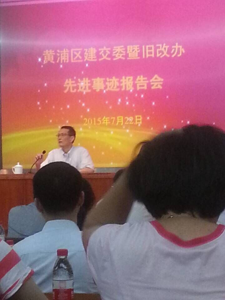 杨连山同志在上海黄浦区做先进事迹报告 时间:2015-08-13 5557 日前,上海区域公司外滩源项目部现场施工负责人杨连山同志应邀,在上海市黄浦区建设交通委暨旧改办开展的“三严三实”专题教育系列活动中,做了专题为《爱岗敬业,服务社会,体现自身价值》的先进事迹报告。黄浦区建交委、旧改系统及来自建设工地的工人党员180余人参加了报告会,邀请全国劳动模范张国樑、上海市先进工作者蒋昭瑜、上海市先进农民工杨连山等三位同志做先进事迹报告,杨连山同志的事迹报告打动了与会人员的心,引起了了大家的一致共鸣。