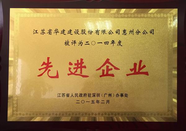 惠州公司荣获“江苏进粤、桂、闽、琼施工先进企业”称号 时间:2015-04-13 2761 4月10日,江苏省人民政府驻深圳(广州)办事处和江苏省住房和城乡建设厅在厦门召开2015年江苏建筑业南方区工作会议,表彰了一批施工先进企业、优秀企业经理和优秀建造师。江苏华建惠州公司荣获“2014年度江苏进粤、桂、闽、琼施工先进企业”称号,总经理华恒荣被评为优秀企业经理,陈申高同志被评为优秀建造师。此外,江苏省住房和城乡建设厅驻南方办事处还对一批施工企业先进个人进行表彰,公司王家海、黄秀刚被表彰为质量安全先进个人,张翼翔被表彰为经营财务先进个人。