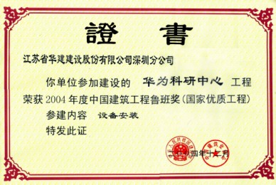 华为科研中心由全国著名的高科技企业深圳华为技术有限公司投资兴建的,工程位于深圳市龙岗区坂雪岗工业区内,占地面积约15万平方米,建筑面积29.6万平方米,由地下一层车库、地上一幢21层高的综合楼、三幢7层高的科研楼和一幢4层高的员工食堂组成。该工程由金门建筑(中国)有限公司、中建二局深圳南方建筑公司和中国华西企业有限公司联合总承包,江苏华建深圳分公司经业主指定为机电分包商,承建的机电分包工程合同价格为2.3亿元,工程于2001年4月开工,至2003年9月整体工程竣工。