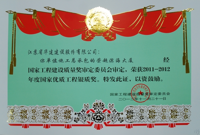 该工程先后荣获2007年度深圳市优质结构工程奖、2010年度深圳市优质工程“金牛奖”、江苏省“扬子杯”优质工程奖,2012年项目QC管理小组荣获“全国工程建设优秀质量管理小组”称号,11月被评为2011-2012年度国家优质工程银质奖。