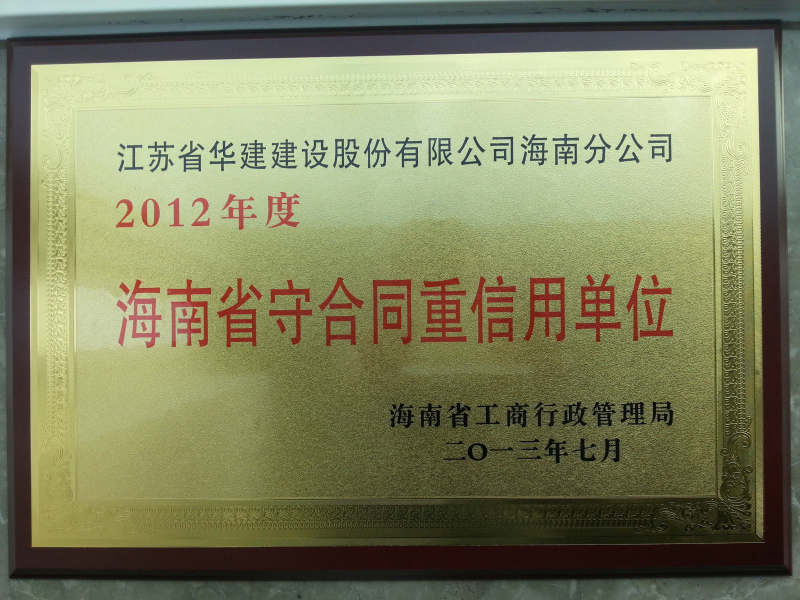 海南分公司喜获海南省守合同重信用单位荣誉称号 时间:2013-09-02 3507 8月底,海南分公司被海南省工商行政管理局表彰为2012年度“海南省守合同重信用单位”,这是公司连续21年获此殊荣。多年来,海南公司坚持诚信为本,努力树立品牌意识、形象意识,通过真诚服务赢得顾客的信赖、市场的拓展,在工程施工中信守合同,确保质量和工期,取得了卓有成效的业绩。