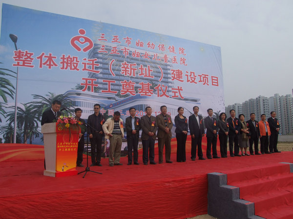 仪式上,三亚市副市长许振凌在致辞中强调本项目的重要性,市政府把这个项目确定为是省市重点工程,定位为三亚医疗卫生单位的示范工程,决心建设海南最亮丽、最有品味、最有实力的妇幼保健院。各部门要齐心协力,确保工程质量和安全,力争将新院建设成为三亚市卫生系统的高质量、有品位的精品工程、满意工程、民心工程。