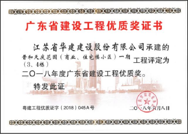 晋和天庆花园一期工程喜获广东省建设工程优质奖 时间:2018-07-25 2757 近日,根据广东省建筑业协会粤建协[2018]49号文件《关于公布2018年度广东省建设工程优质奖名单的通知》,由珠海公司承建的晋和天庆花园一期工程喜获广东省建设工程优质奖。 晋和天庆花园一期工程由珠海区域公司第五项目部负责施工,位于珠海市金湾区三灶镇中心地段,总建筑面积156804.71m2,由8栋高层住宅楼和1栋综合楼组成。 (技术质量处)