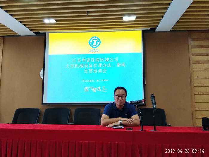 施工安全设备处对总部下发的《大型机械设备管理办法》及广东省下发的《广东省建筑起重机械防御台风安全技术指引(试行)》两份文件进行了详细地解读,把公司总部及珠海区域公司关于大型机械设备管理的基本规定和要求向项目部同仁进行了宣贯,并就总部下发的《大型机械设备管理指南》,从合作单位的选择、设备的选型、方案的编制审核、现场的安装拆卸、日常检查要点及安全资料等多方面向项目部同仁作了细致地讲解。